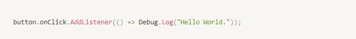 Here, () => Debug.Log("Hellow world.") defines what should happen when the button is clicked.