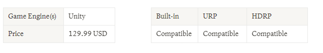 Built-in URP HDRP Compatible Compatible Not Compatible