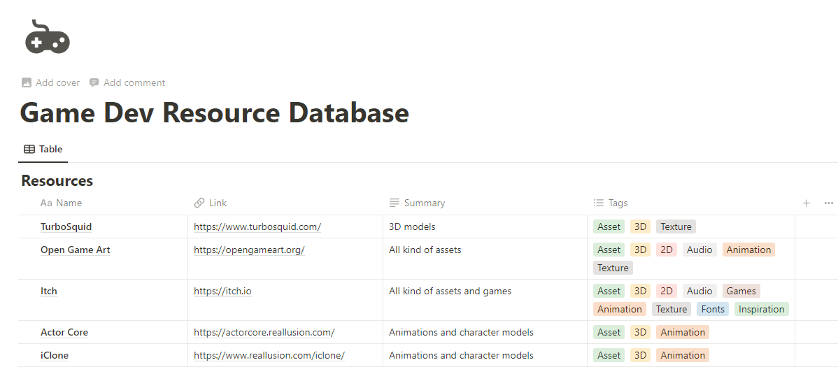 It's a work in progress, so please do let me know anything that you'd add or change. Hopefully this will help you discover something useful for your game dev journey!